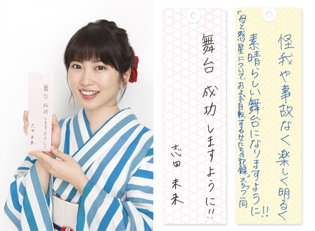 KADOKAWA発行の関西ウォーカー中綴の「京の七夕ウォーカー」表紙にご登場いただいている「志田未来さん」(8月20日(土)~21日(日)公開の舞台「母と惑星について、および自転する女たちの記録」で主演)と、スタッフの方々にお願いごとを書いていただきました!