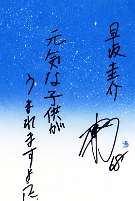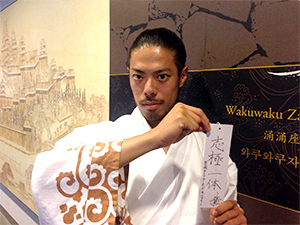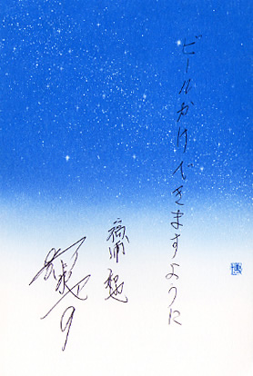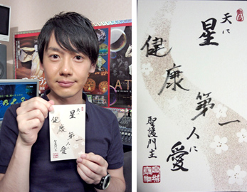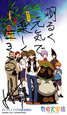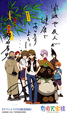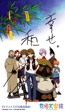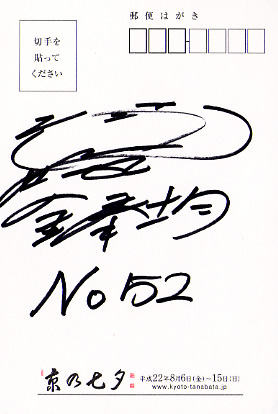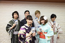 2013年6月16日(日)南座で、今年の「京の七夕絵はがき短冊」のデザインの1つである「有頂天家族」のテレビ放送先行プレミアイベントが開催されました。原作者の森見登美彦さんをはじめ、メインキャストの皆さんにそれぞれの願いを「京の七夕絵はがき短冊」に書いていただきました。
