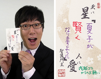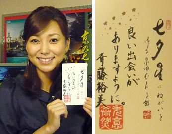 京の七夕公式ガイド「七夕ウォーカー」の表紙に登場している相武紗季さんとMBSアナウンサーの斎藤 裕美さんにも京の七夕願い短冊に願いを書いていただきました。